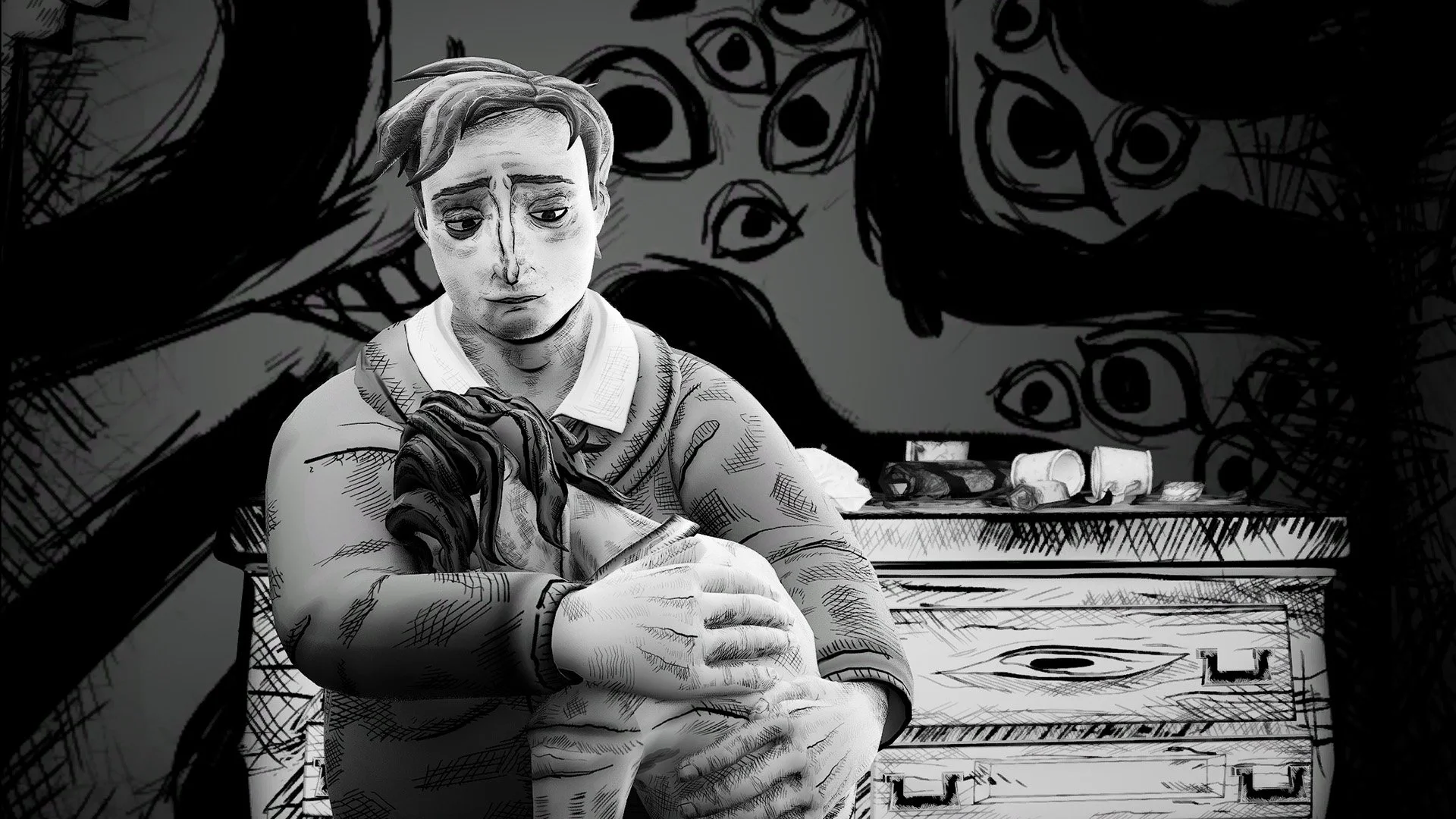 Irving suffers from nightmares that he tries to quell by staying awake. He begins to isolate himself and keep himself from sleeping. In doing so, he begins to hallucinate. His visions crescendo, and he begins to lose his grip on reality.